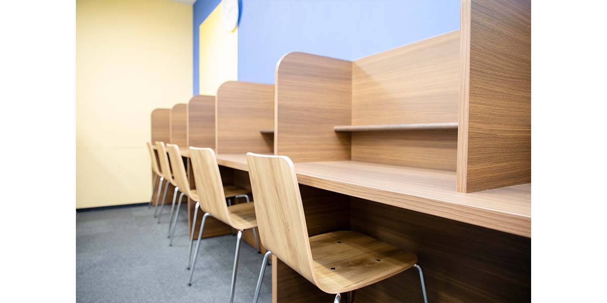 進学館の校舎は、小さなお子さまでも安心して通学できる駅の近くにございます。また、校内は勉強に集中できる環境を整えています。