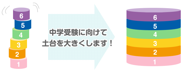 小1~小4のメイン講座・玉井式国語的算数教室に、早い時期に主体的な学習ができるようにするための「興味付け」と「学習の土台」を身につけるシステムを完備しました。