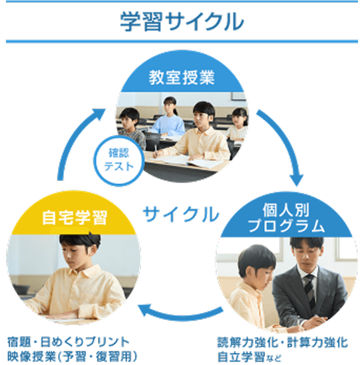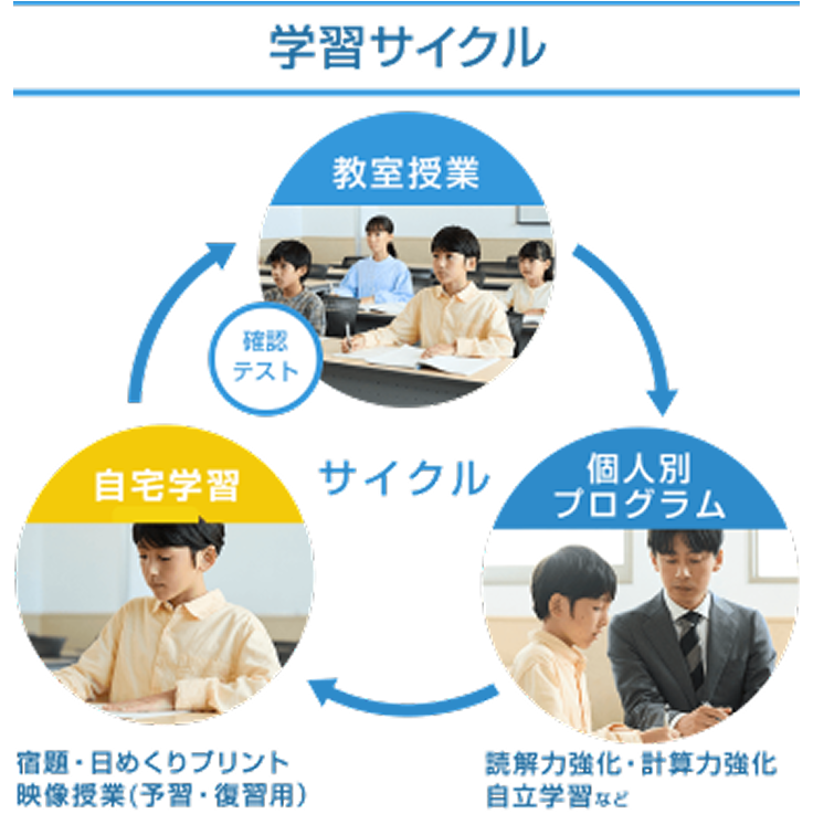 毎週実施する復習テストと、入試問題のトレンドを取り入れた「進学館オープン模試」で学習内容の習熟度を判定します。 小6では年2回の科目別・単元別「リサーチテスト」で、弱点を詳細に分析し個人別の指導方針を決定します。 年に6回の「合不合判定テスト」の結果も合わせて受験校を決定していきます。