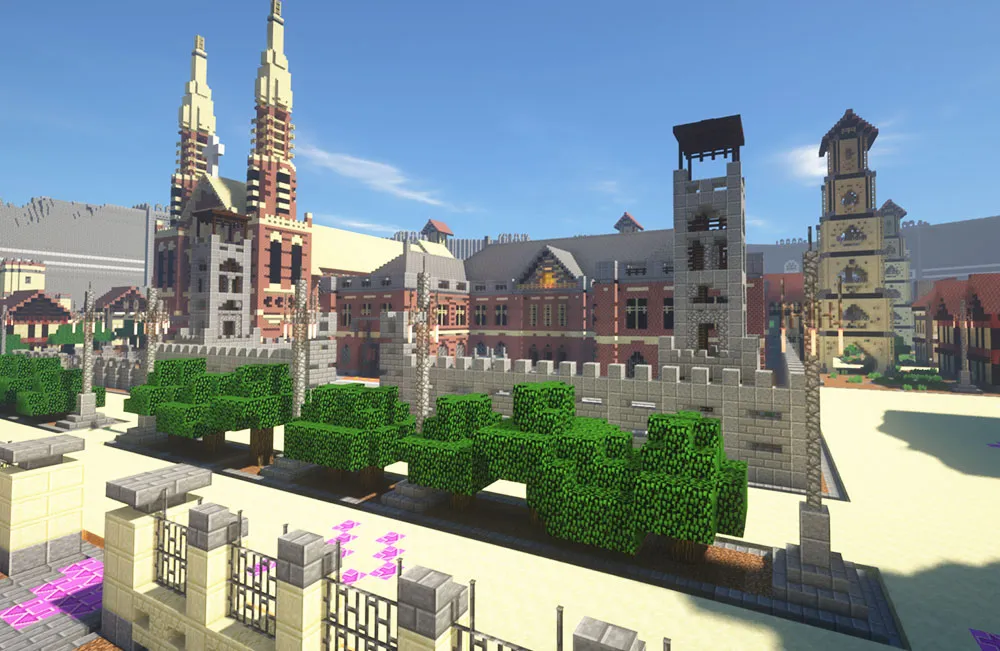 授業で使用するゲームの世界はプロのマインクラフターが作ったオリジナル。わくわく感満載の世界で、子どもたちは楽しく学ぶことができます。