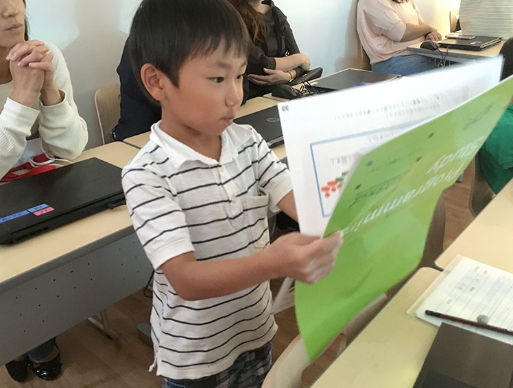 親の目線からみるとゲームをやっている感覚に見えると思うのですが、授業を見てみると、メイクコードを組んでみたり、イメージの発想につながると思うので通って損はないと思います。また、プレゼン能力というのはこれから大事になってきますので、毎月発表の機会があることは大事だと思っています。