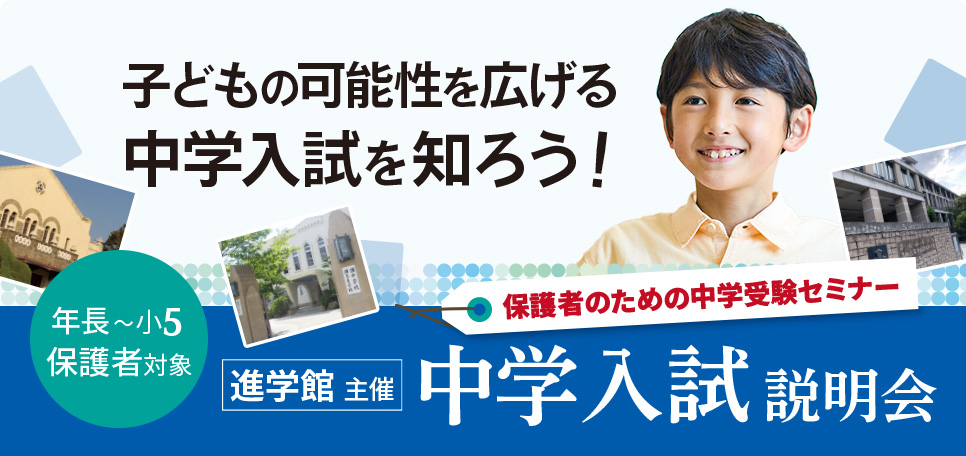 中学受験を予定している方や検討中の方だけではなく、ちょっと気になるけれどまだ何もしていない…という方も、お子さまの可能性を広げるきっかけとして、ぜひご参加ください!