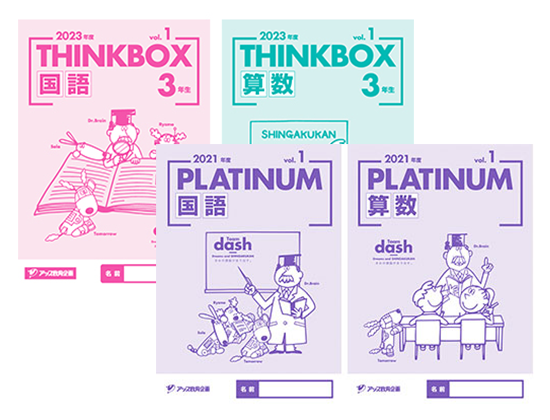 進学館(S)コースで使用する「THINK BOX」と、プレEコース専用教材「プラチナ」を繰り返し学習していきます。算数・国語ともに週1冊で完結する教材です。日々プリ(毎日の宿題)が適量含まれておりますので、学習習慣を身につけることができます。