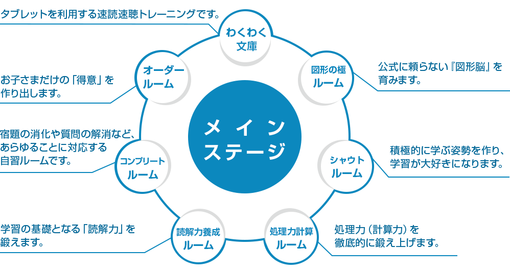 基幹講座「メインステージ」の他にも、アニメーションを見て算数の文章問題を読み解く力を鍛える「玉井式国語的算数教室(年長~小3)」、カードゲームやパズルで算数脳を育てる「アルゴクラブ(年長後期~小5)」などの講座がございます。