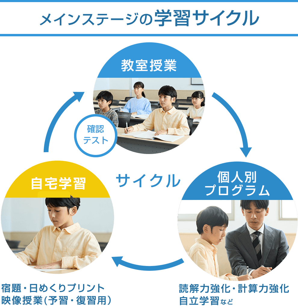 中学受験を目指してご入学される方は4年生が多いですが、低学年から着実に学力をつけ、学習習慣をつけておきたいとお考えの方には、低学年からのご入学をおすすめします。そのため、進学館は1年生から基幹講座「メインステージ グランドコース」を開講しています。